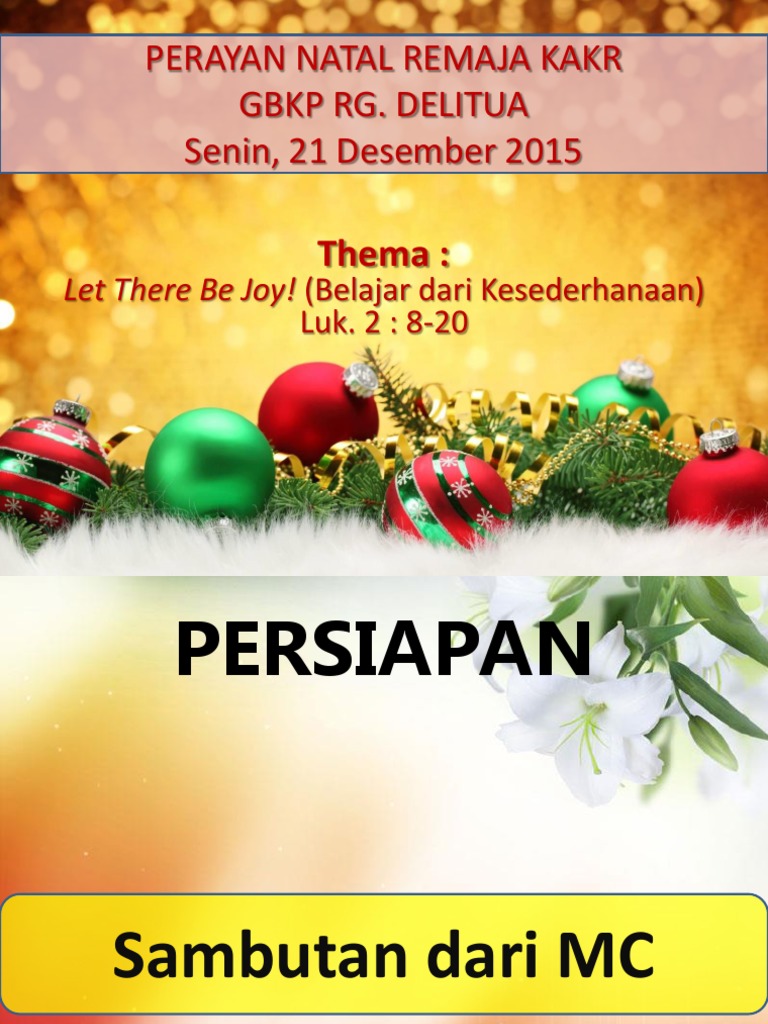 You can use powershow.com to find and download example online powerpoint ppt presentations on just about any topic you can imagine so you can learn how to improve your own slides and. Alegeți dintre sutele de prezentări gratuite pentru stilul și gustul fiecăruia. Persiapan perayaan natal dibutuhkan beberapa minggu sebelum acara tersebut di laksanakan, salah satunya adalah penyusunan lagu… Liturgi natal sekolah minggu/ pemuda. Menjelang perayaan natal di tahun ini, kita disibukkan dengan berbagai persiapan untuk memeriahkan perayaan tersebut.